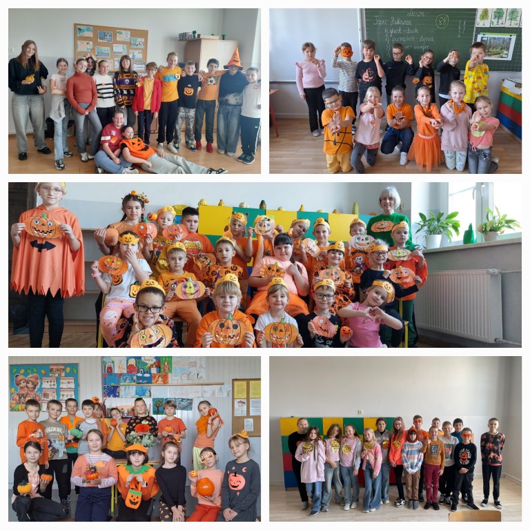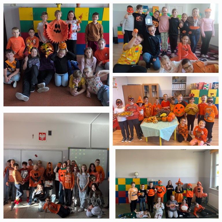 W ostatni październikowy dzień nasza szkoła zamieniła się w dyniową krainę! Uczniowie i nauczyciele wspólnie świętowali Dzień Dyni – pełen koloru, kreatywności i jesiennej radości. Korytarz szkolny ozdobiono dyniowymi dekoracjami, a uczniowie przyszli w przebraniach inspirowanych jesienią i dyniami.