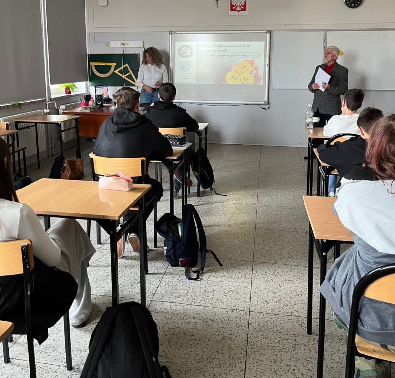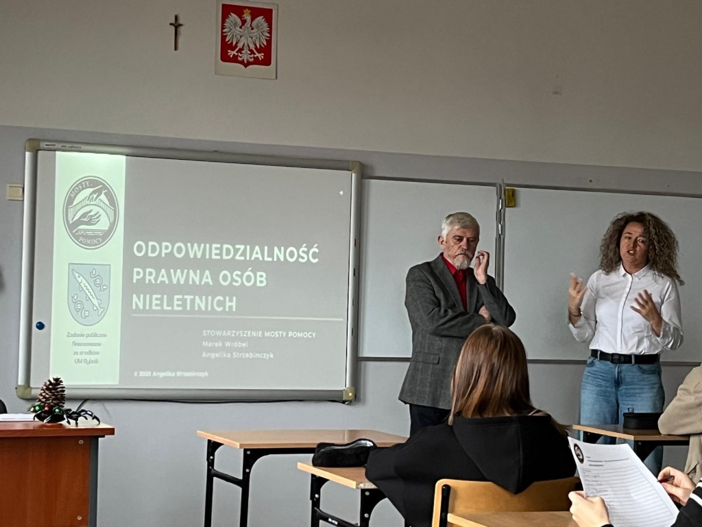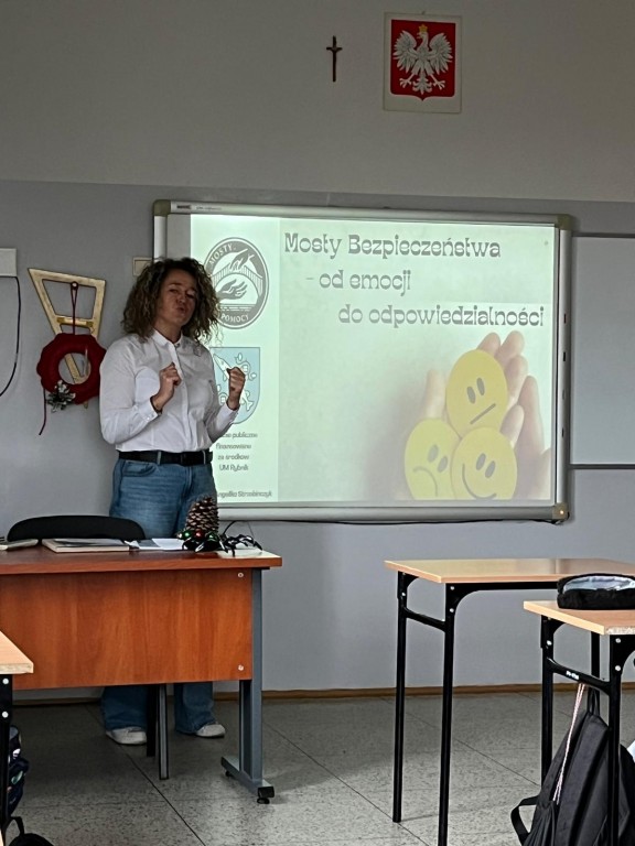 We wtorek 09.12.25r. odbyły się w naszej szkole warsztaty profilaktyczne "Mosty Bezpieczeństwa - od emocji do odpowiedzialności", poświęcone rozwijaniu świadomości prawnej, emocjonalnej i społecznej młodych ludzi, przeciwdziałaniu zachowaniom ryzykownym, w tym przemocy rówieśniczej i cyberprzemocy.