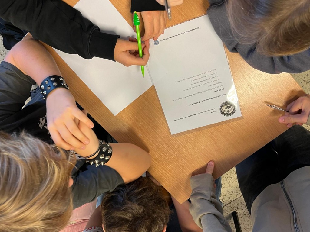 Uczniowie klas VII na dwugodzinnych zajęciach poznawali aspekty prawne odpowiedzialności nieletnich, uczyli się reagowania w sytuacjach trudnych, rozpoznawania emocji. Rozmawiali o cyberprzemocy, hejcie i gdzie szukać pomocy.